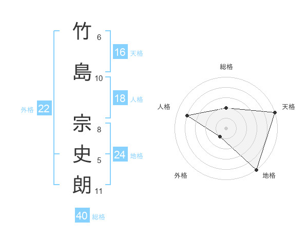 竹島 宗史朗さんを姓名の画数から五運を鑑定