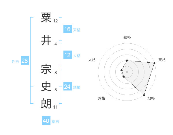 粟井 宗史朗さんの地格は24画の5点!