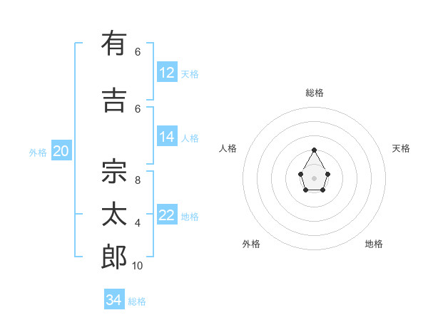 有吉 宗太郎さんを姓名の画数から五運を鑑定