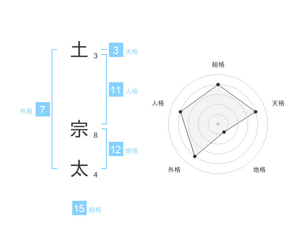 土 宗太さんの総格は15画の4点!