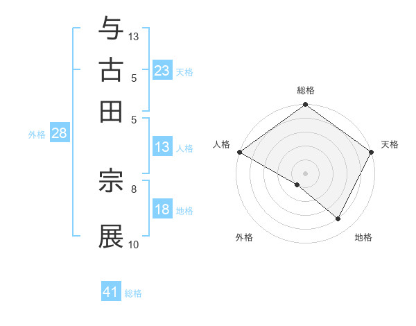与古田 宗展さんを姓名の画数から五運を鑑定