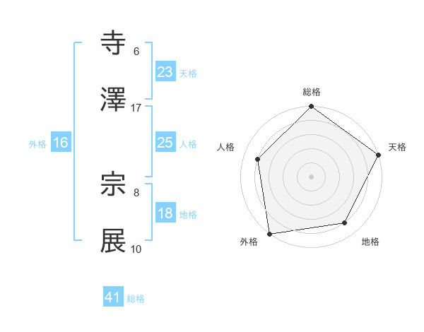 寺澤 宗展さんの総格は41画の5点!