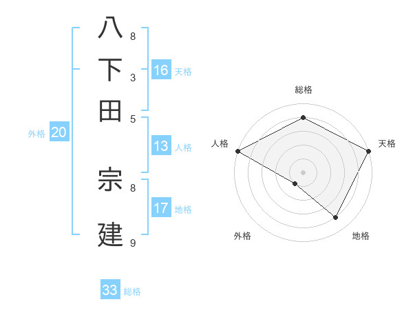 八下田 宗建さんを姓名の画数から五運を鑑定