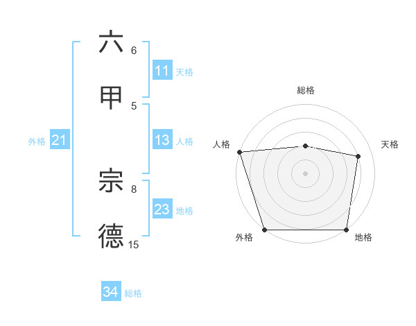 六甲 宗德さんの外格は21画の5点!