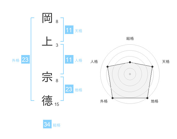 岡上 宗德さんを姓名の画数から五運を鑑定