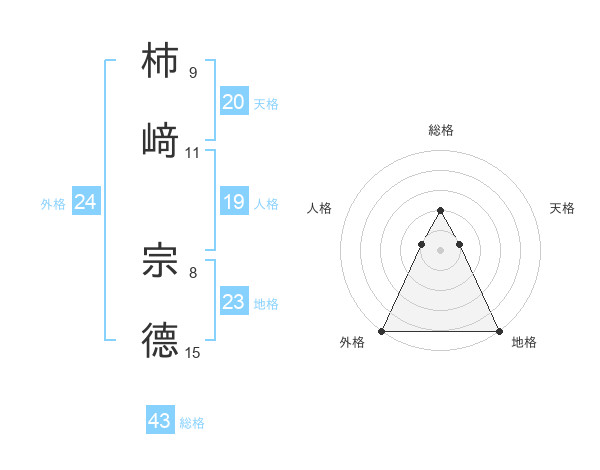 柿﨑 宗德さんを姓名の画数から五運を鑑定