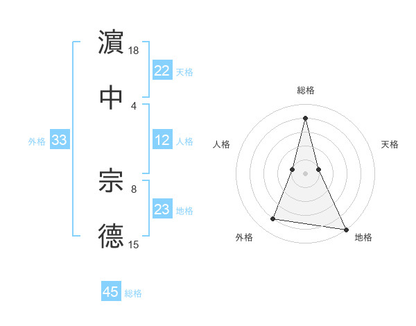 濵中 宗德さんを姓名の画数から五運を鑑定