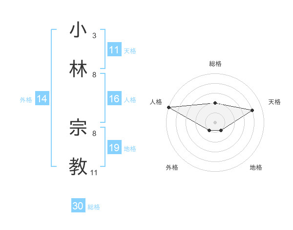 小林 宗教さんの総格は30画の2点!