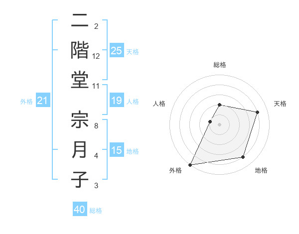 二階堂 宗月子さんの天格は25画の4点!