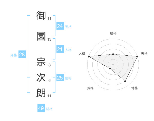 御園 宗次朗さんの天格は24画の5点!