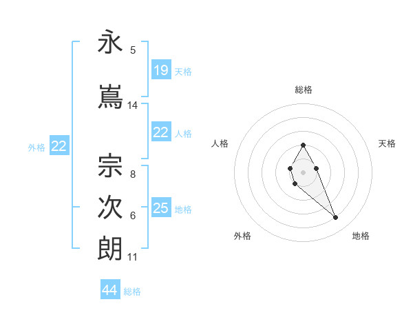 永嶌 宗次朗さんの人格は22画の1点!