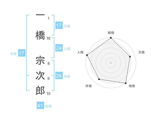 一橋 宗次郎さんを姓名の画数から五運を鑑定