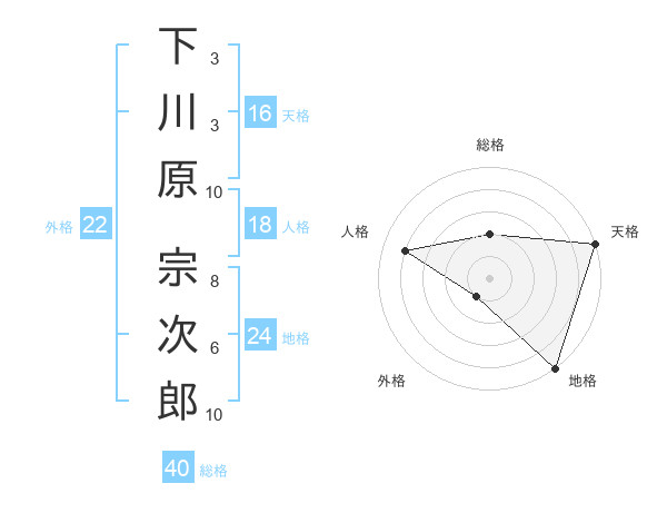 下川原 宗次郎さんの外格は22画の1点!