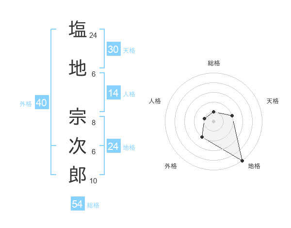 塩地 宗次郎さんを姓名の画数から五運を鑑定