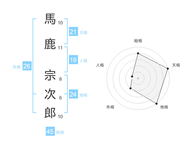 馬鹿 宗次郎さんの総格は45画の4点!