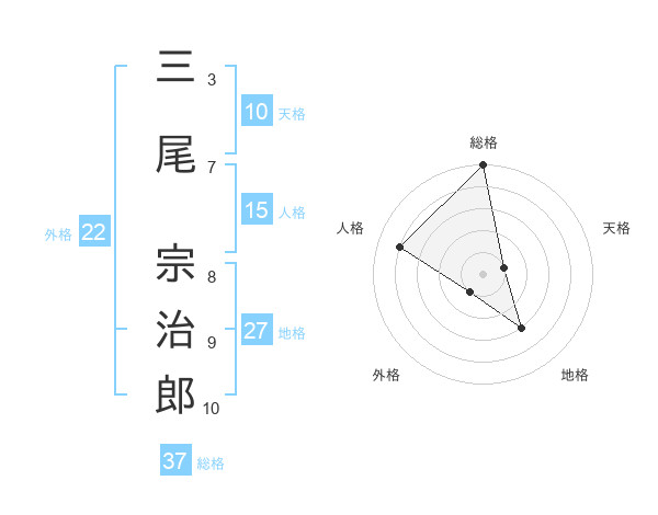 三尾 宗治郎さんを姓名の画数から五運を鑑定