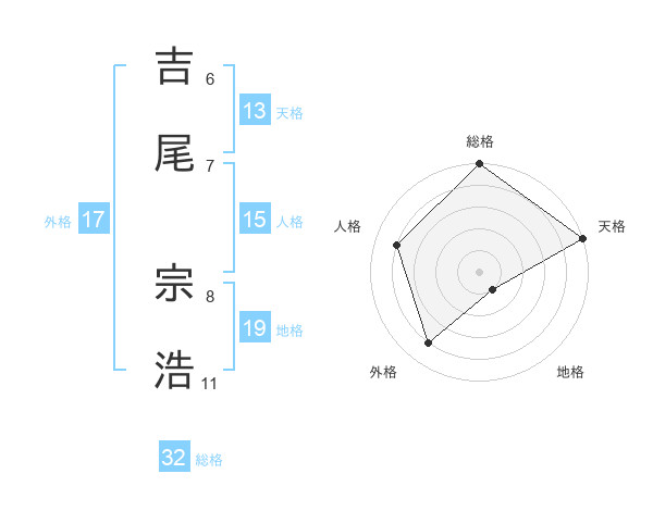 吉尾 宗浩さんの総格は32画の5点!