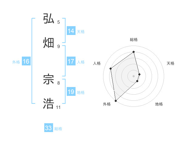 弘畑 宗浩さんの総格は33画の4点!