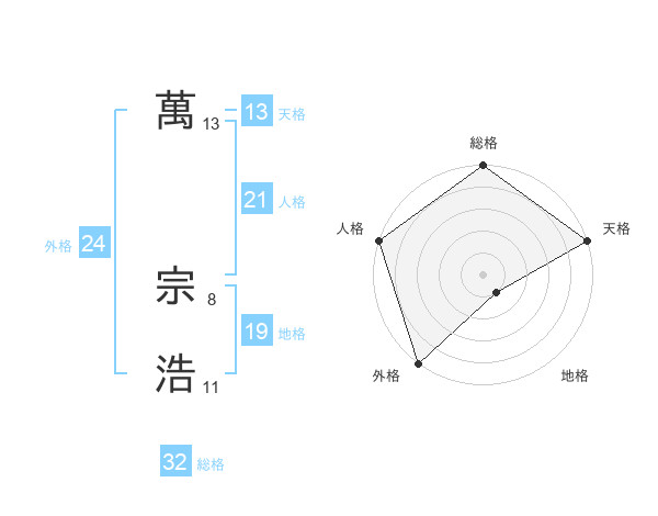 萬 宗浩さんを姓名の画数から五運を鑑定