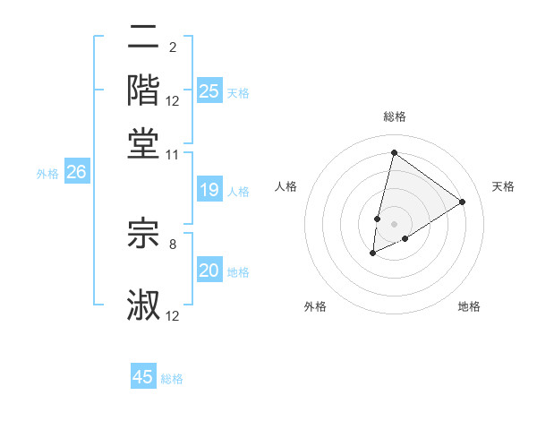 二階堂 宗淑さんの地格は20画の1点!