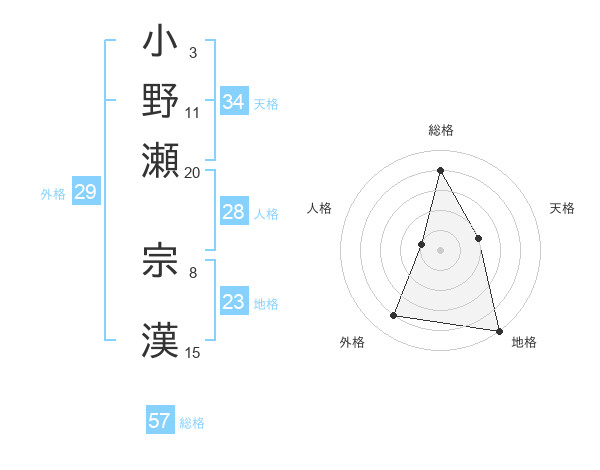 小野瀬 宗漢さんを姓名の画数から五運を鑑定