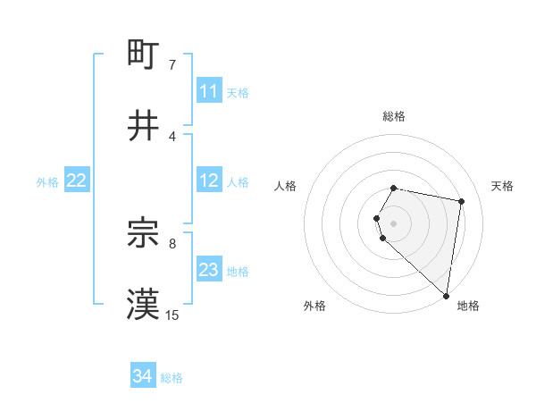 町井 宗漢さんを姓名の画数から五運を鑑定