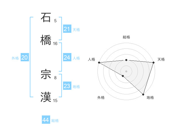 石橋 宗漢さんを姓名の画数から五運を鑑定