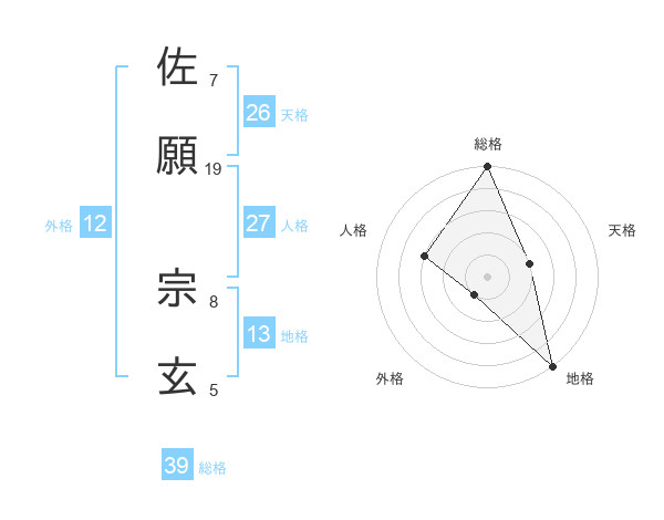 佐願 宗玄さんを姓名の画数から五運を鑑定