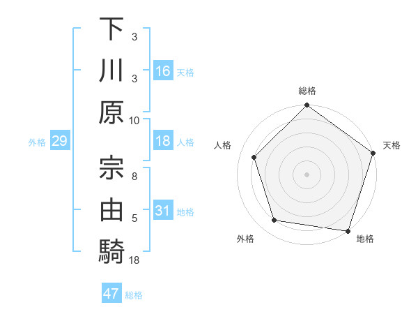 下川原 宗由騎さんを姓名の画数から五運を鑑定