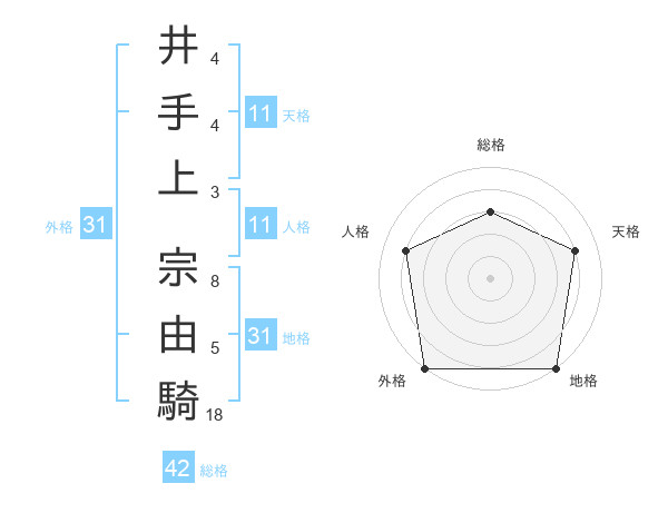 井手上 宗由騎さんを姓名の画数から五運を鑑定