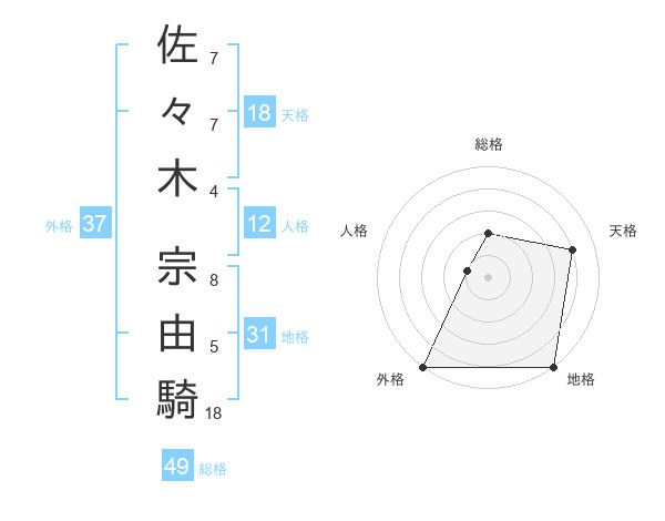 佐々木 宗由騎さんを姓名の画数から五運を鑑定