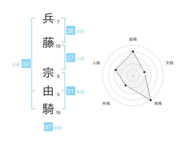 兵藤 宗由騎さんの総格は57画の4点!