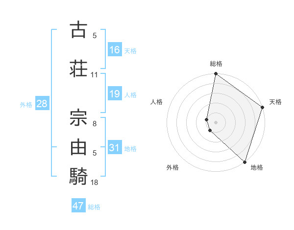 古荘 宗由騎さんの総格は47画の5点!