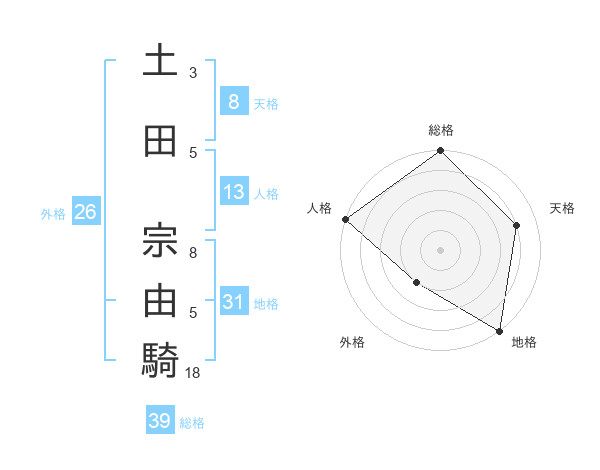 土田 宗由騎さんを姓名の画数から五運を鑑定
