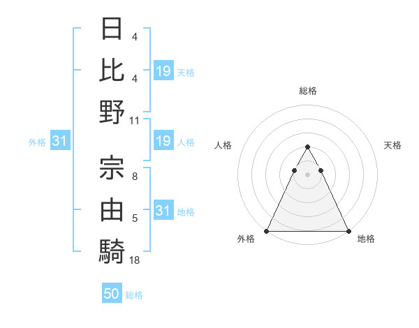 日比野 宗由騎さんを姓名の画数から五運を鑑定
