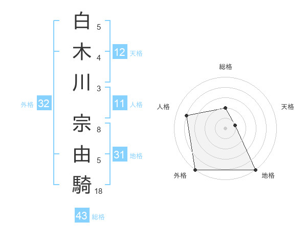 白木川 宗由騎さんを姓名の画数から五運を鑑定