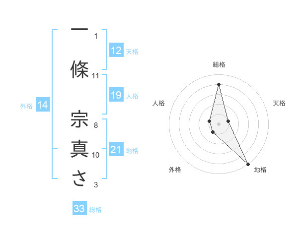 一條 宗真ささんを姓名の画数から五運を鑑定