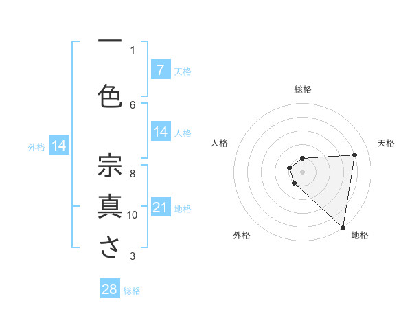 一色 宗真ささんの地格は21画の5点!