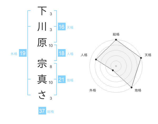 下川原 宗真ささんを姓名の画数から五運を鑑定