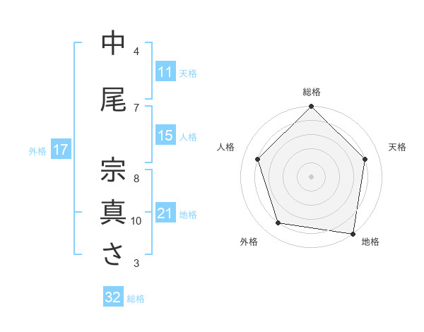 中尾 宗真ささんの総格は32画の5点!