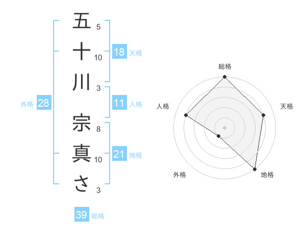 五十川 宗真ささんの総格は39画の5点