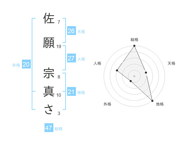 佐願 宗真ささんを姓名の画数から五運を鑑定