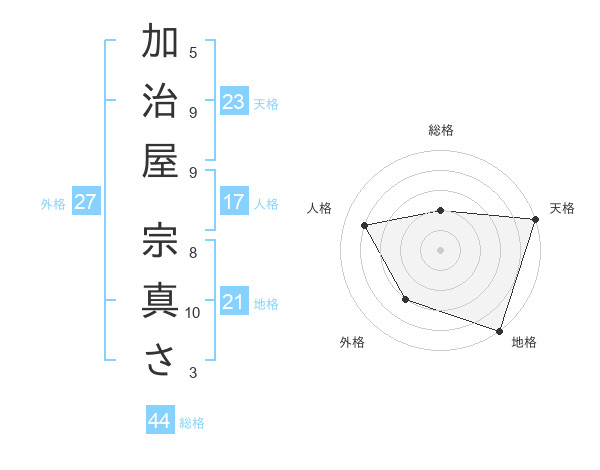 加治屋 宗真ささんの天格は23画の5点!