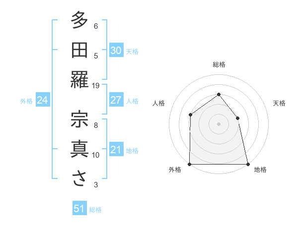 多田羅 宗真ささんを姓名の画数から五運を鑑定