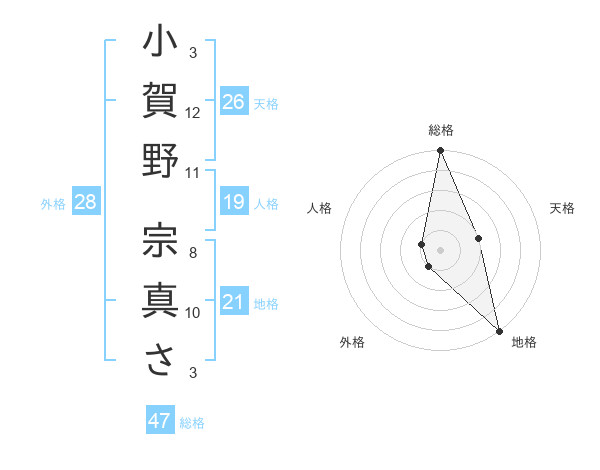 小賀野 宗真ささんを姓名の画数から五運を鑑定