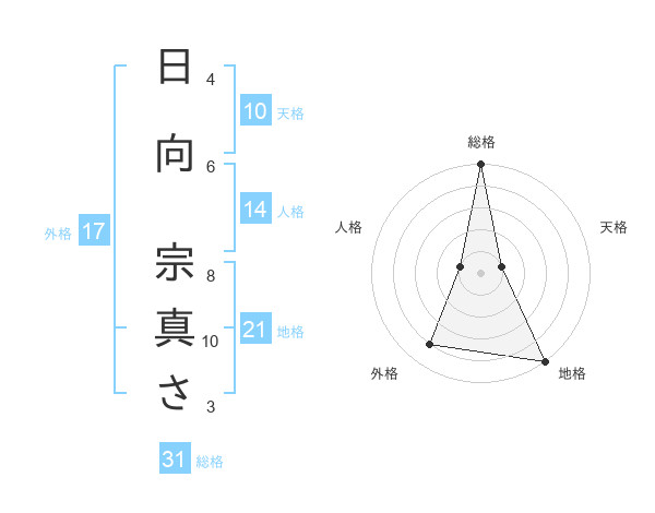 日向 宗真ささんを姓名の画数から五運を鑑定