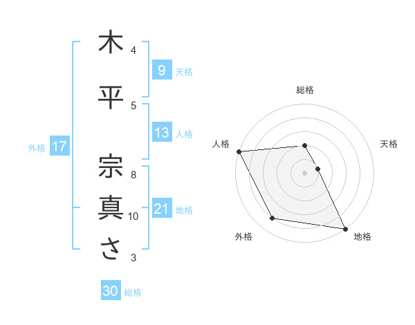木平 宗真ささんの総格は30画の2点!