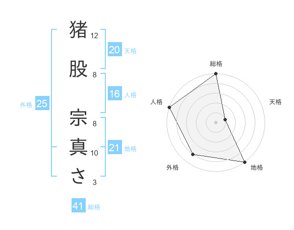 猪股 宗真ささんを姓名の画数から五運を鑑定