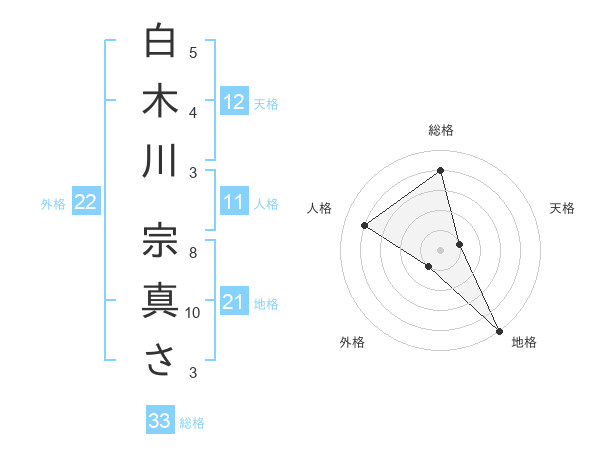 白木川 宗真ささんを姓名の画数から五運を鑑定