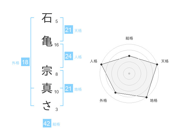 石亀 宗真ささんを姓名の画数から五運を鑑定